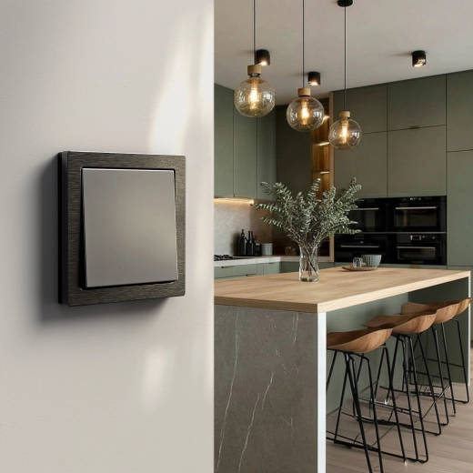 Одноклавишный выключатель в комплекте с рамкой (Грифель)