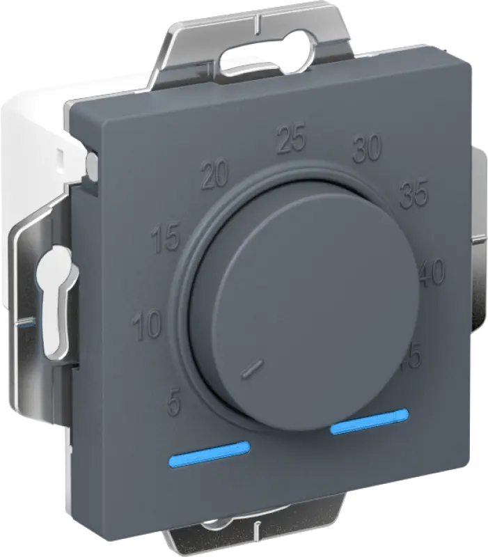 Термостат Systeme Electric (ранее Schneider Electric) серии AtlasDesign электронный для теплого пола, с датчиком, 10 A в цвете грифель обеспечит комфортное регулирование температуры пола и идеально впишется в интерьер помещений. Ном. напряжение: 230 В. Частота: 50 Гц. Электронная защита от перенапряжения. Диапазон регулирования: от +5 до +45 °С. Датчик температуры пола в комплекте (кабель 2,5 м), тип NTC. Степень защиты от пыли и влаги: IP20.